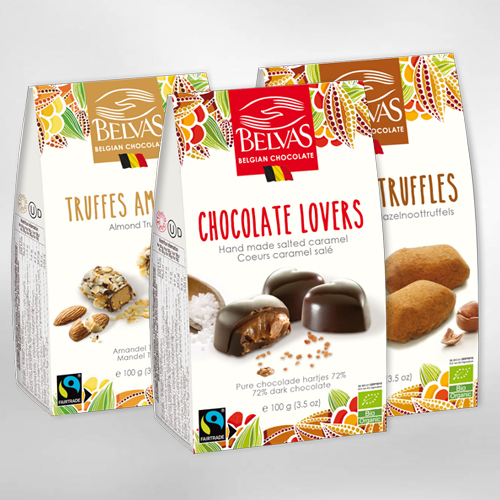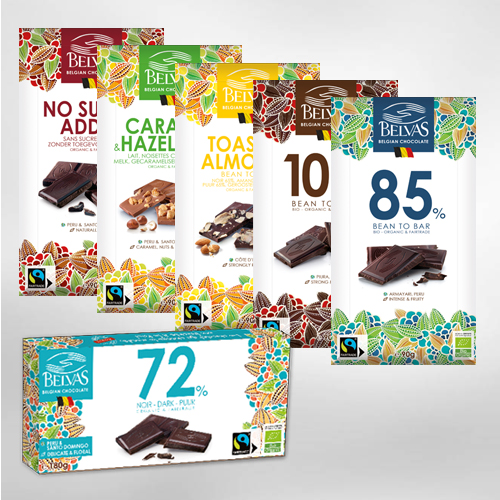 Belvas entwickelte im Laufe der Jahre ein komplettes Sortiment an Bio-Pralinen und -Trüffeln mit dem zentralen Thema „zurück zum authentischen Geschmack“: Schokolade mit mindestens 72% Kakao aus auserlesenen Herkunftsorten (Peru, Ecuador, Santo-Domingo), Bio-Mandeln aus Murcia, Bio-Haselnüsse aus Piemont, Bio-Pistazien aus Sizilien, (vor Ort erzeugte) Bio-Butter, Bio-Sahne, Vanille usw.