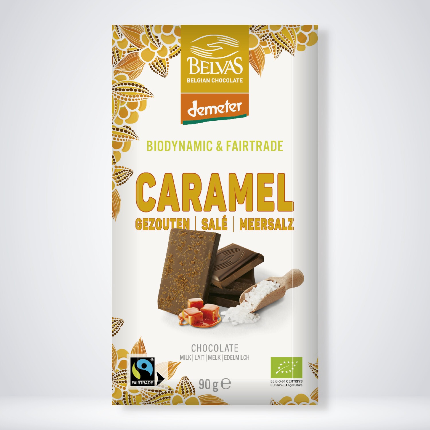 An intense milkchocolate, enhanced with thiny salted caramelshaves.