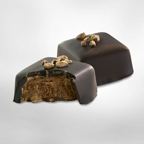 Notre « Brut de Noir » est une délicatesse au praliné noisettes et décoré de brisures de fèves de cacao pures. Il vous fera découvrir la pure saveur du cacao du Pérou, avec un minimum de sucre !
