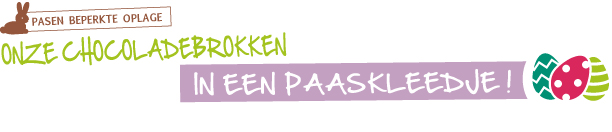 Het succes van de chocoladebrokken eind 2015 is de paashaas niet onopgemerkt voorbijgegaan. Ter gelegenheid van Pasen hebben we een speciale versie van dit product gemaakt. Een beetje gek en regressief maar oh zo lekker.