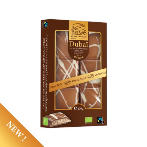 Chocoladereep – Dubai Style – Melkchocolade gevuld met speculoos (100g)